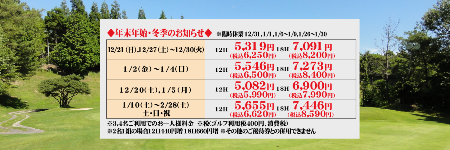 ※12月30日の最終6ホールスタートは14時になります